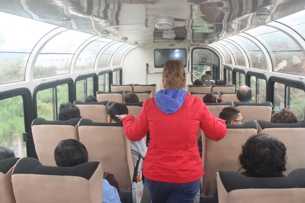 Soon after taking off our guide took passengers to an outdoor balcony viewing deck at the back of the train. We were taken four at a time to enjoy the outdoor fresh air and scenery which added a bit of adventure to the ride.
